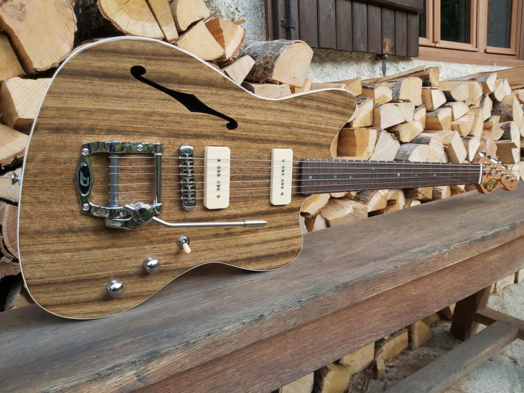 Le corps reprend une conception thinline avec une table collée afin d’alléger la guitare.