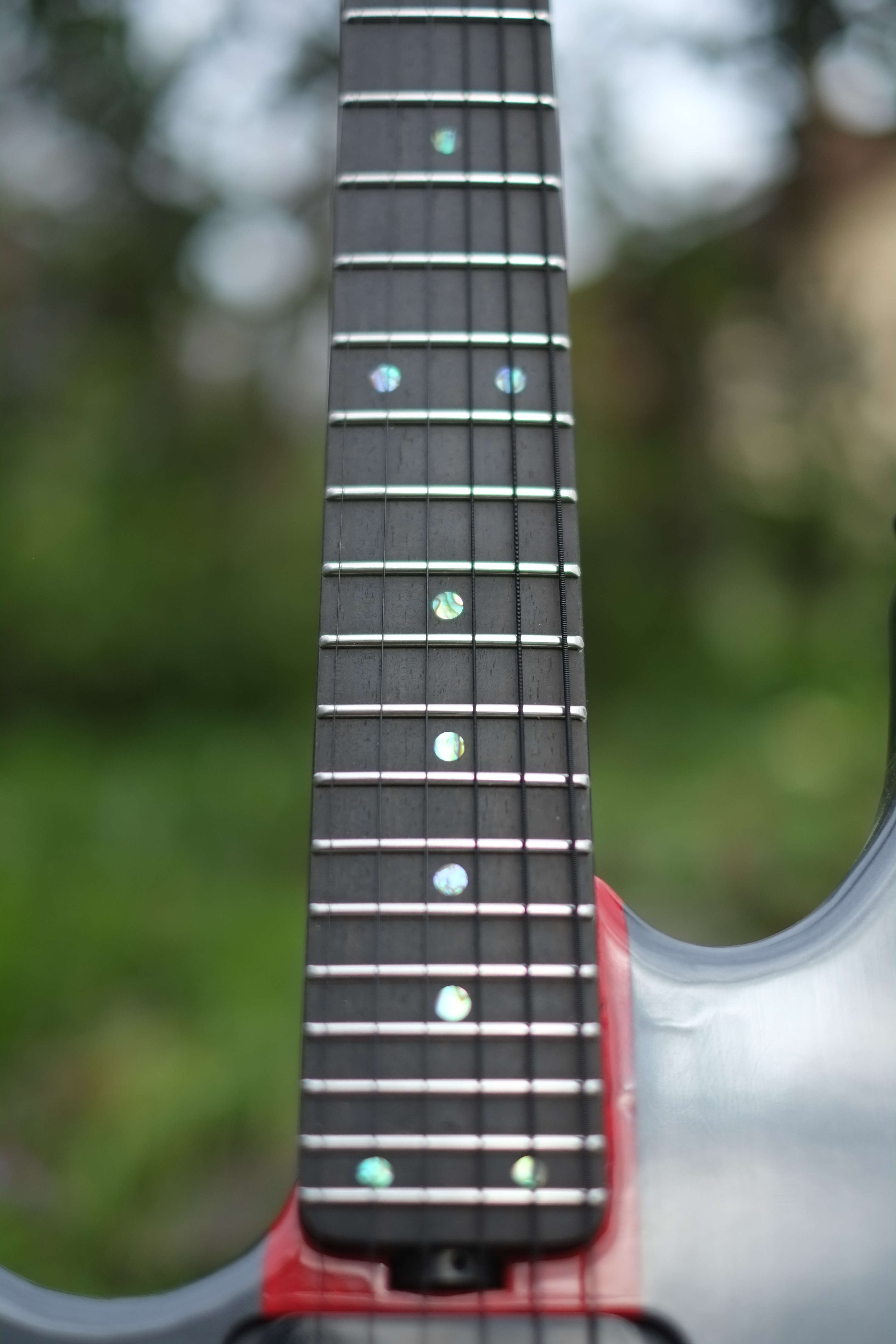 - Touche en ébène avec repère de touche en abalone, radius de 16 pouces
